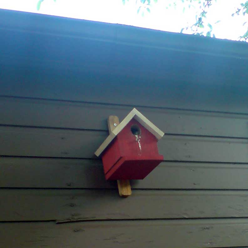 we tried not to disturb this sparrow's nest inside the cute house he built,